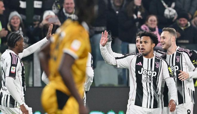 比賽開始后就進入了尤文圖斯的節(jié)奏。伊爾迪茲接連獲得機會,但是,他的射門不是被撲出,就是踢偏了。第23分鐘,尤文圖斯進球了!喬納森-戴維在門前包抄鏟射,球進了!8分鐘后,埃希茲布單刀射門打進,但是因為越位被吹掉了。隨后,喬納森-戴維的進球也因為越位被吹掉。半場結束,尤文圖斯1-0領先烏迪內(nèi)斯。